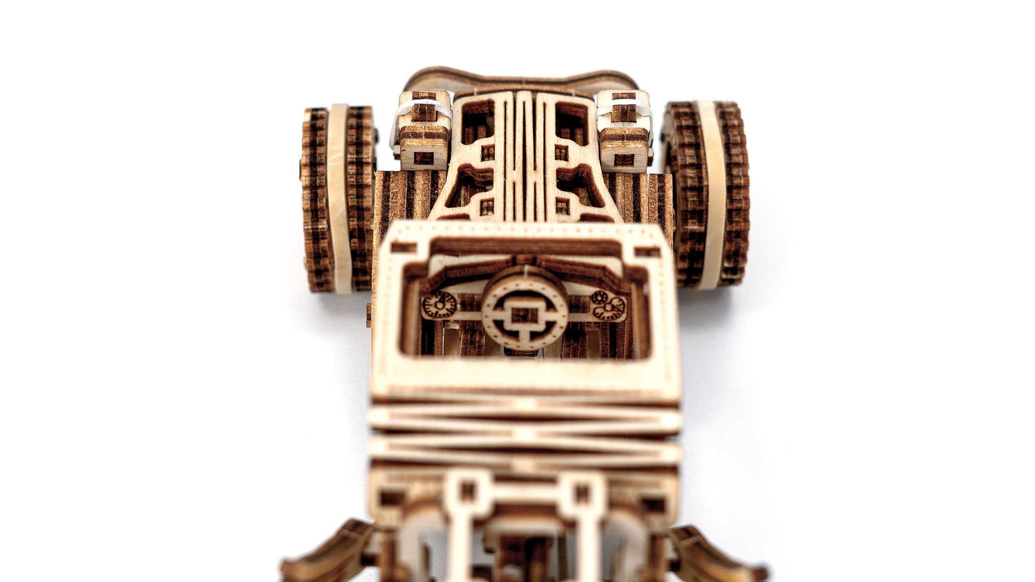 Myšlenka za Tiny Adventures Buggy pochází z tradice mechanických modelů, které byly populární již na počátku 20. století. Tehdy takové stavby fascinovaly fandy i milovníky techniky. Díky moderním technologiím, jako jsou procesy řezání laserem a udržitelné materiály, vdechujeme této tradici nový život. Buggy kombinuje nostalgii s inovativní technologií a dělá mechaniku hmatatelnou jako nikdy předtím. Není to jen model, ale pocta umění pohyblivé dřevěné mechaniky.